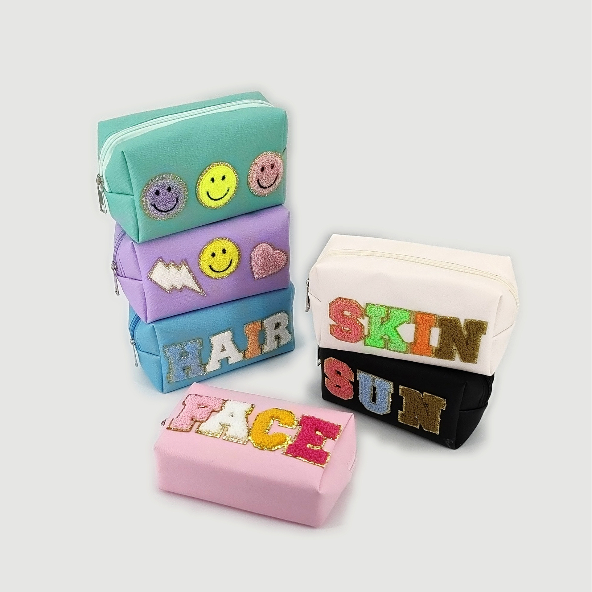 クロスボーダータオル刺繍アルファベットステッカー化粧ポーチクロスボーダーpu刺繍アルファベット布ステッカー防水ポータブル収納バッグ大容量