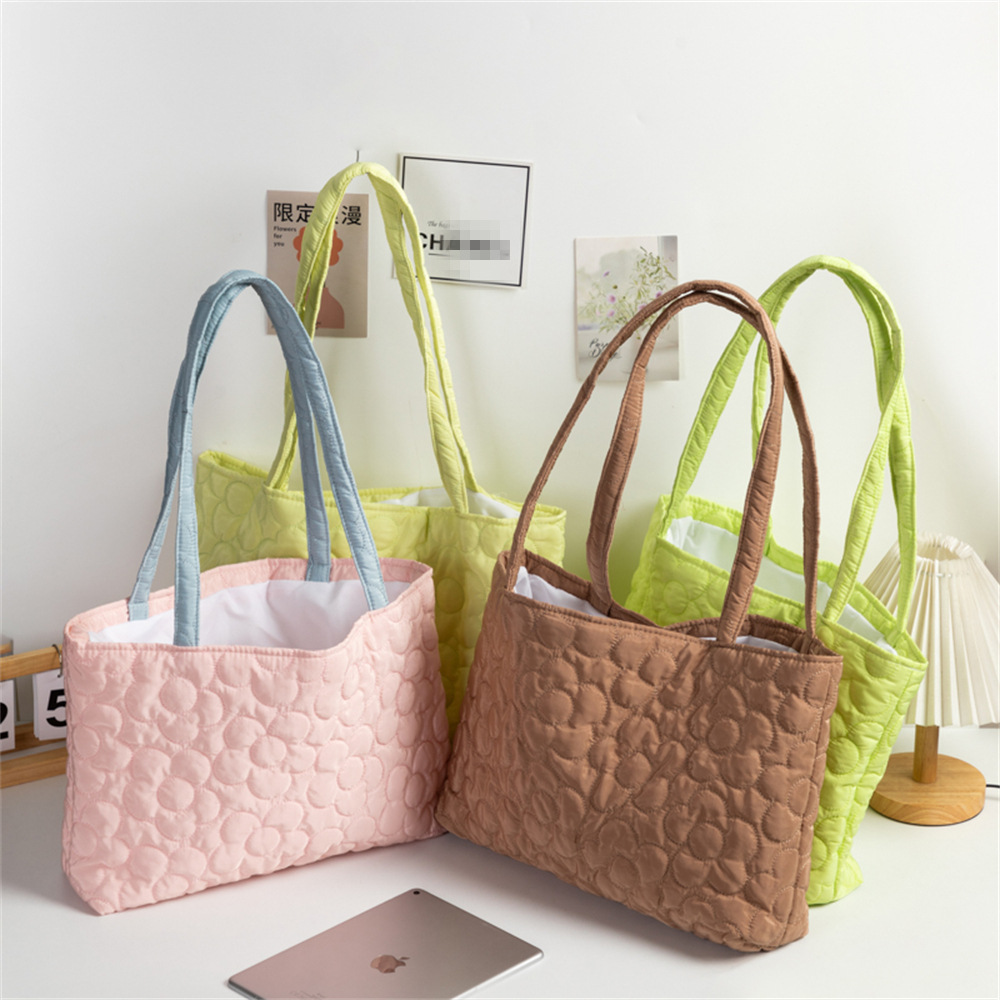 2023秋冬新作大容量レディーストートバッグ片肩手提げショッピングバッグキルティング花キャンディー色レディースバッグ