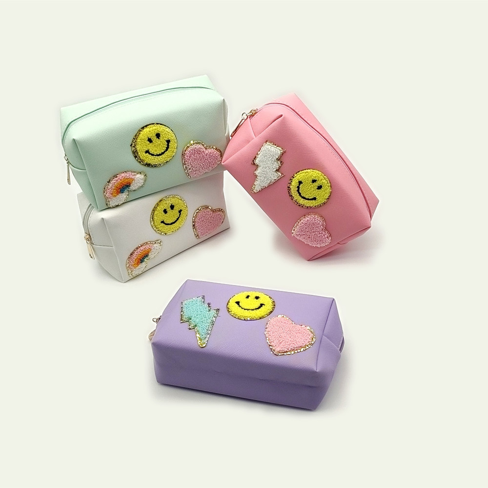 国境を越えた新しい化粧バッグ女性携帯2023タオル刺繍文字笑顔ins洗面袋収納バッグ晩餐バッグ