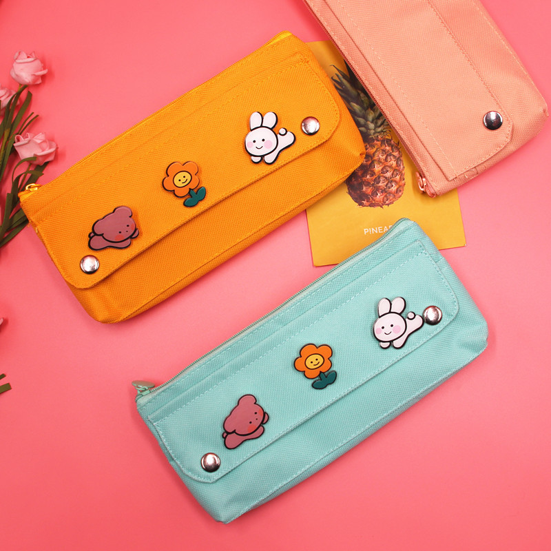 韓国版ins高弾オックスフォード布純色筆袋創意学生文房具箱シンプル倒梯鉛筆ケース収納ケース