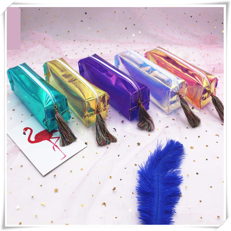 日韓原宿レーザー透明筆袋シンプル女子学生フリンジ収納化粧バッグ大容量学生文房具袋