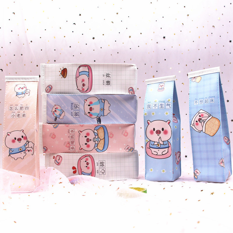 Ins新商品豚創意可愛い筆袋趣味牛乳筆袋創意収納小銭入れケース