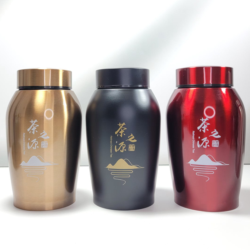 新型ステンレス茶葉缶茶葉包装箱密封缶大トランペット多目的貯蔵缶卸売りロゴスポット