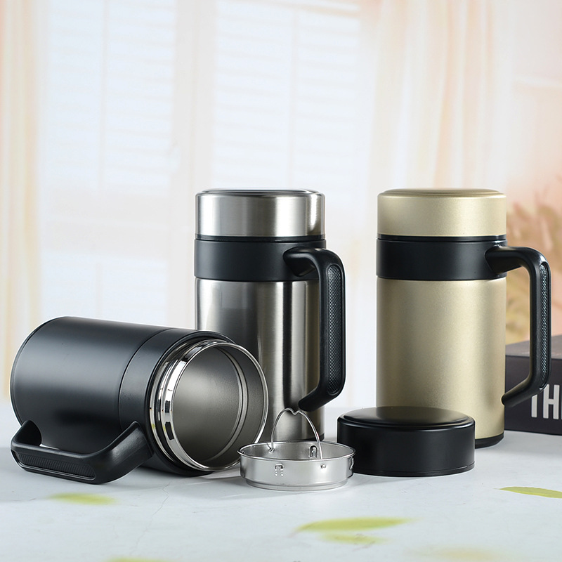 シンプル高級男性ハンドルオフィスカップ女性用フィルター付きお茶ビジネスオフィス304ステンレス保温カップ