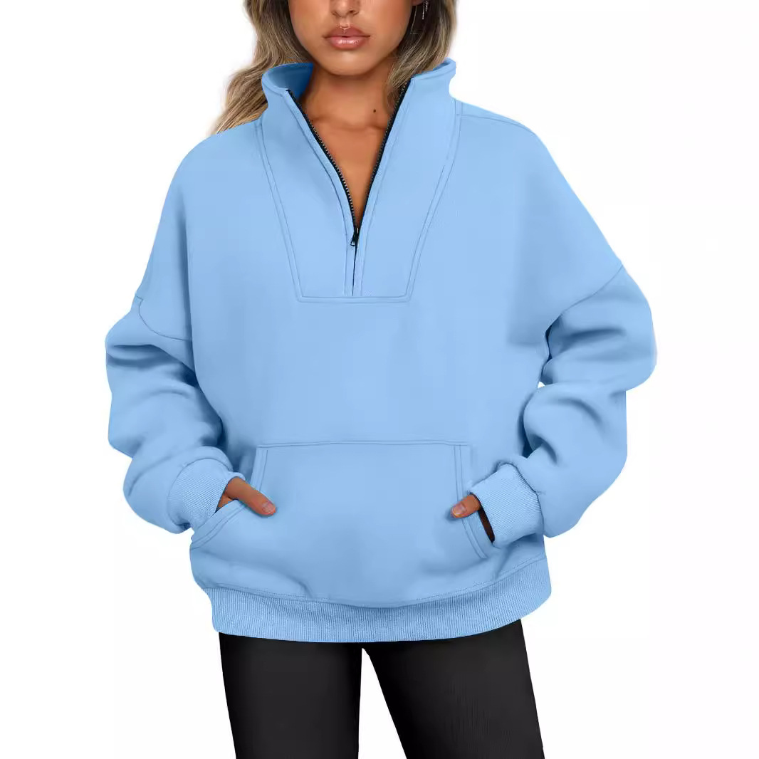 2024秋冬立襟純色のガードルのポケットファスナーの女性服はカジュアルでゆったりとしています。