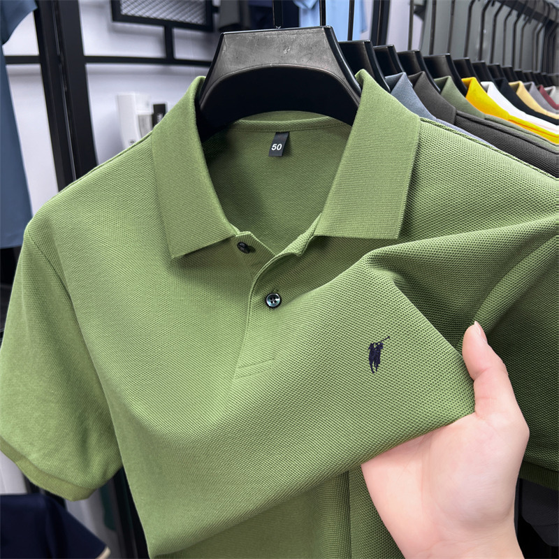 貿易純綿メンズ半袖Tシャツ通気性夏新作ビジネスカジュアル中年紳士ポロシャツ工場直販