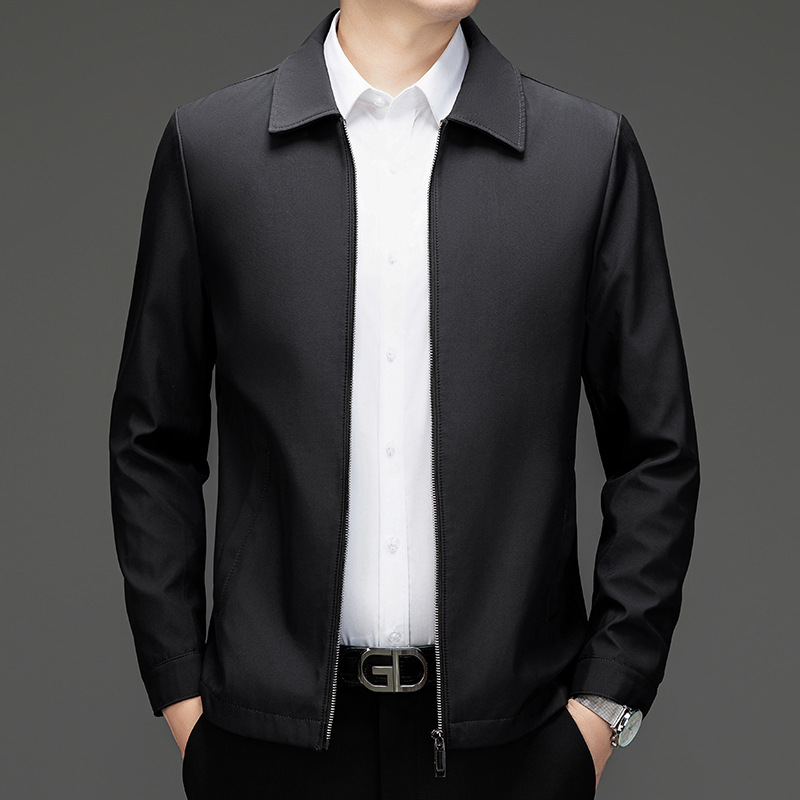 春と秋の新型男性ジャケットの中年のお父さんは上着を着ます。