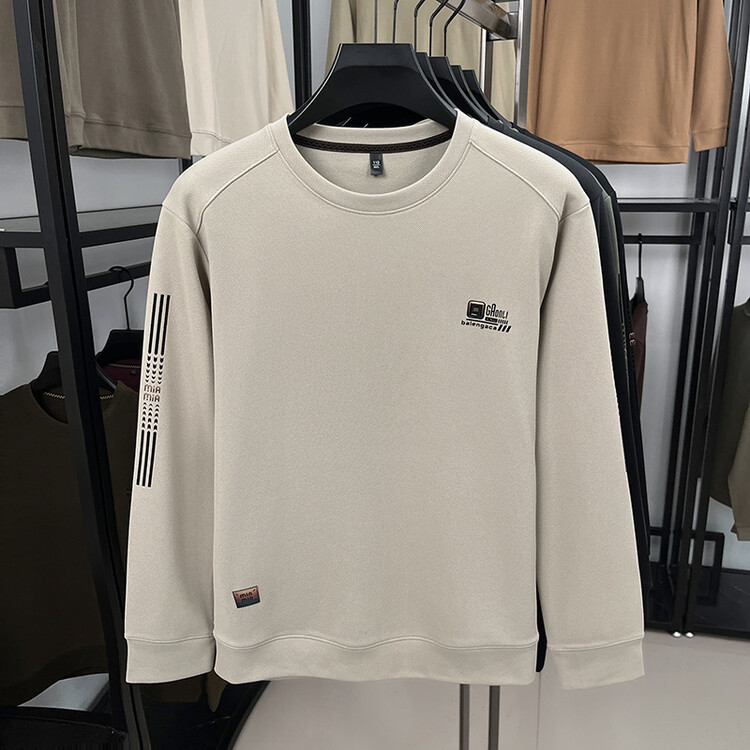 320グラムの高級男性のカーディガンの大きいサイズの2024秋の新型の丸首の青年の韓国版の長袖のtシャツの男性の底のシャツ