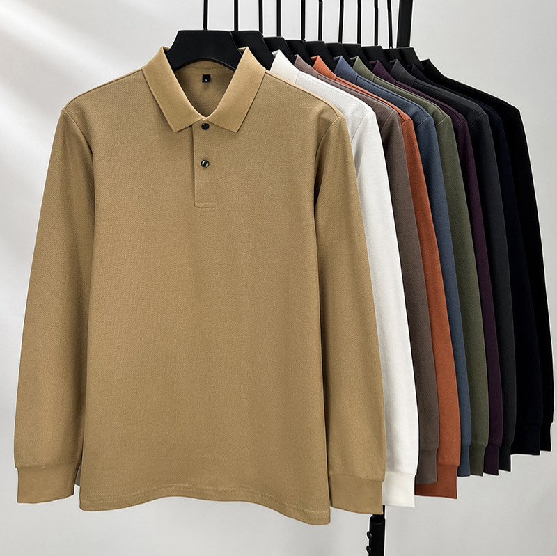 卸売り代代男性poloシャツ長袖2024新型カジュアル襟長袖シャツ男性tシャツ純色