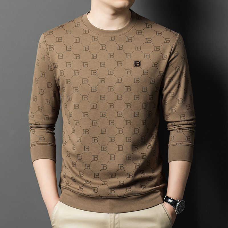春と秋の新型男性の衛衣2024ファッションビジネス丸首プリントカジュアル男性の衛衣