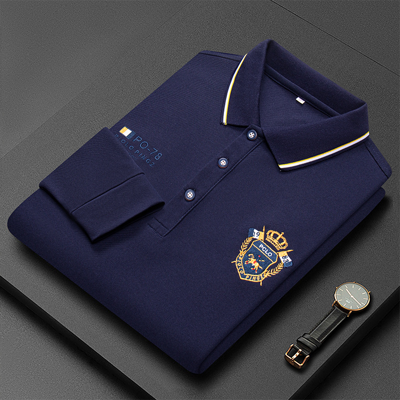 春と秋の新型メンズ長袖poloシャツu型刺繍高級tシャツの襟がゆったりしています。