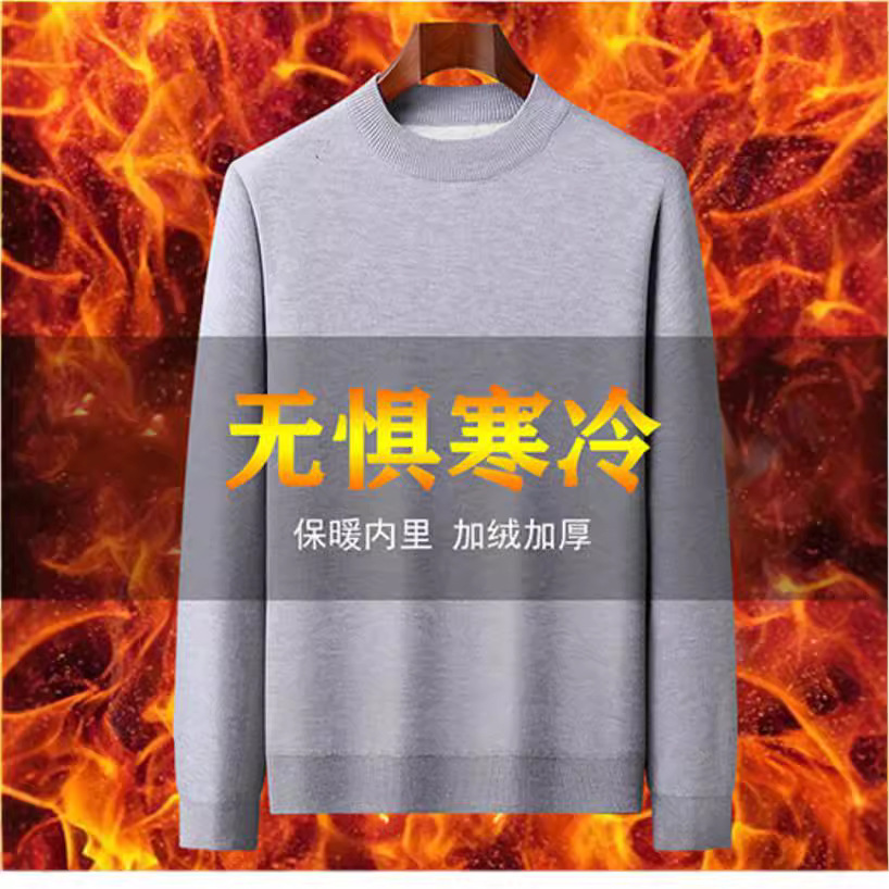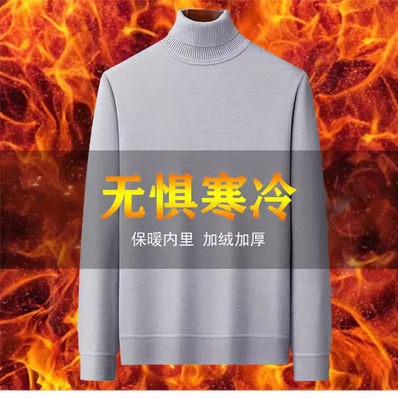 2024秋冬の新型の一体毛の男性のセーターの半高襟の底のシャツの超細い針のシャツとベルベットの厚い男性のシャツ
