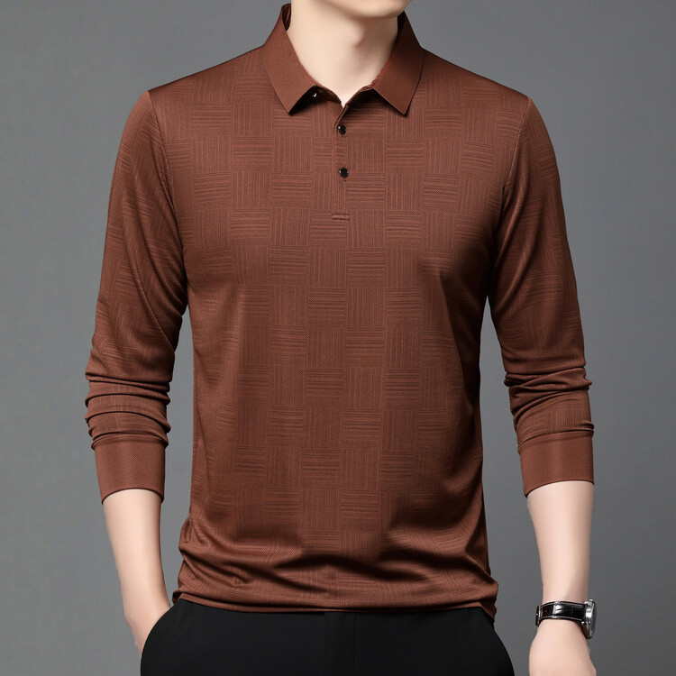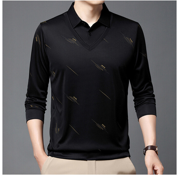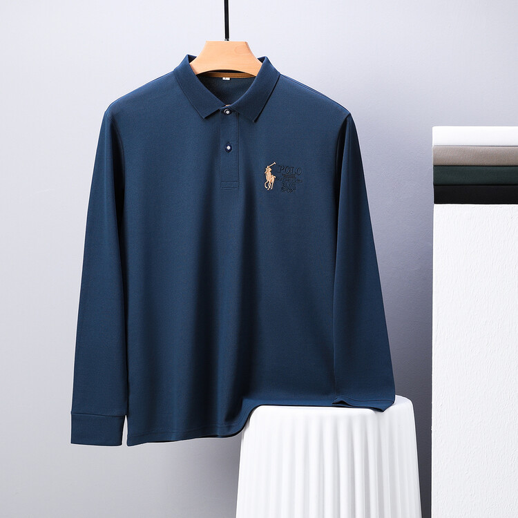 2024年新作ビジネス風カジュアルメンズポロシャツ刺繍柄春秋長袖折り襟メンズtシャツトップス