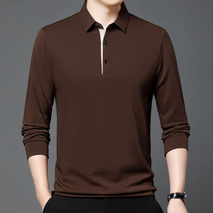 2024春秋新長袖男性poloシャツ男性中年カジュアル純色ハサミ襟男性襟tシャツ男性