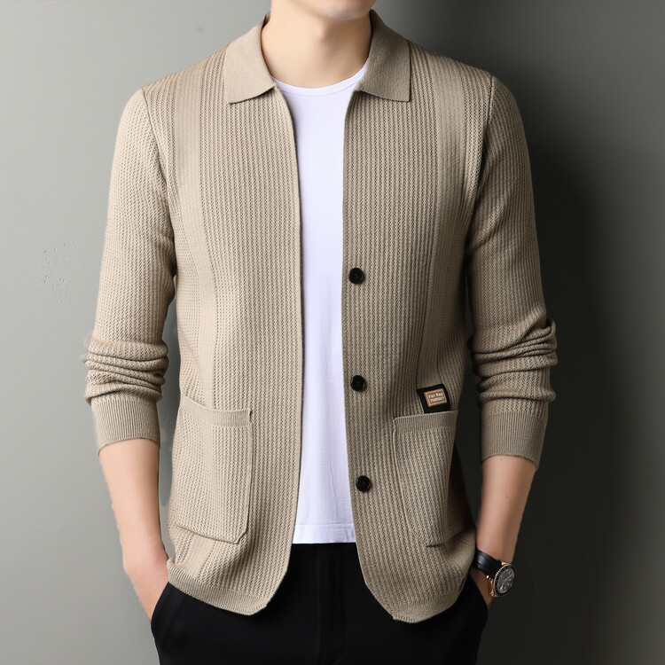 春と秋のカジュアルな男性のニットカーディガンの襟が薄い男性のセーターの上着