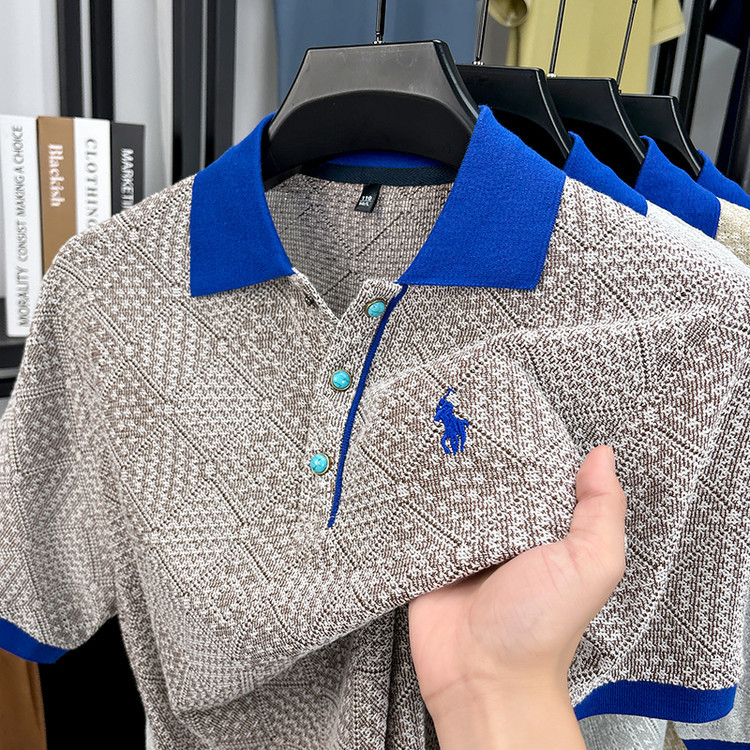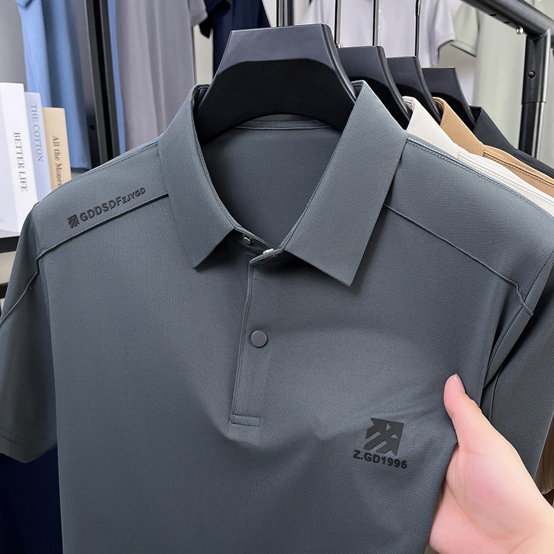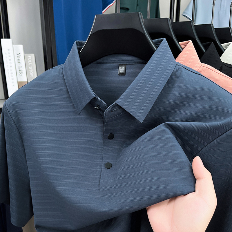 2025夏の新型氷糸半袖poloシャツ男性錦アンモニア無痕弾力純色薄い襟tシャツ男