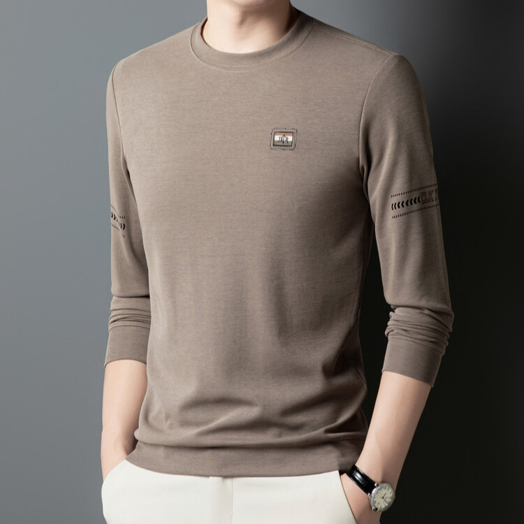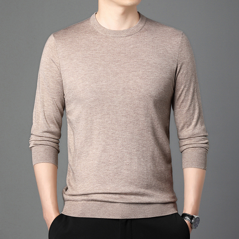 メンズTシャツ、薄手のニット、ラウンドネック、プルオーバー、若者向け、メンズトップス、スリムフィット、万能、春