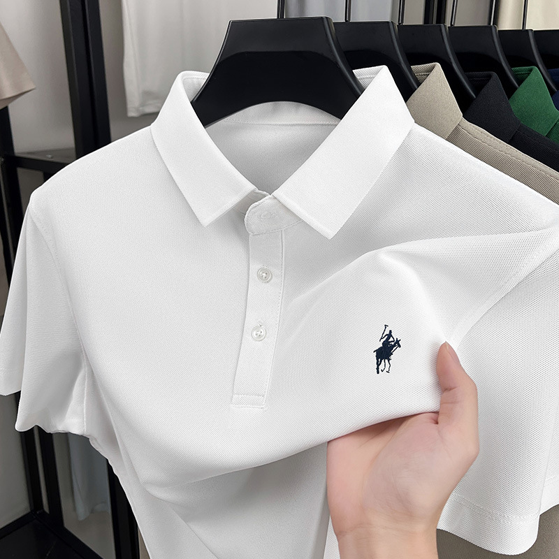 2025新型男性poloシャツ高級品質純色半袖ニット襟シャツ百合tシャツクロスボーダー服