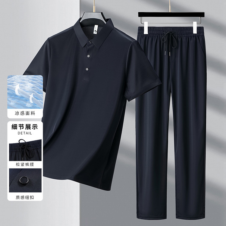 新型氷糸スーツpoloシャツ男性半袖カジュアルスポーツ外着ズボン通気速乾男性スーツ上着