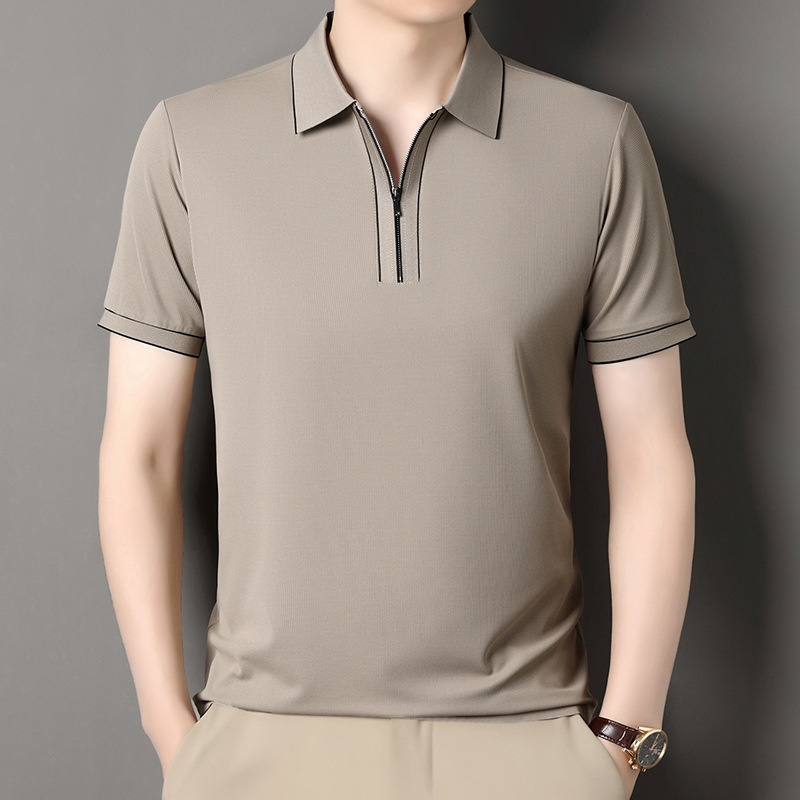 アイスシルク半袖夏新作カジュアルメンズラペルTシャツファッショナブルな中年お父さん薄手の半袖ポロシャツ