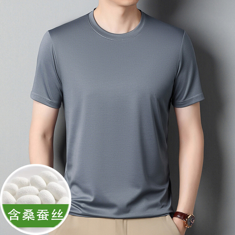 マルベリーシルク半袖Tシャツ夏クロスボーダー薄手無地若者と中年向けシンプルなルーズで多用途な男性用ラウンドネックTシャツ