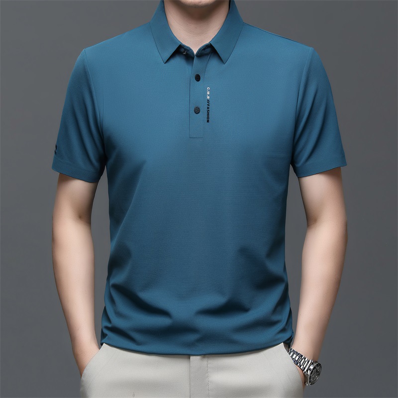 2025 新しい夏の Tシャツメンズ高弾性アイスシルクラペルシームレス中年ビジネス半袖メンズポロシャツドロップシッピング