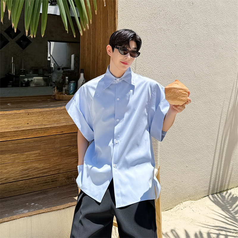 韓国版デザイン感大袖籠insトレンドネット赤シャツ男075