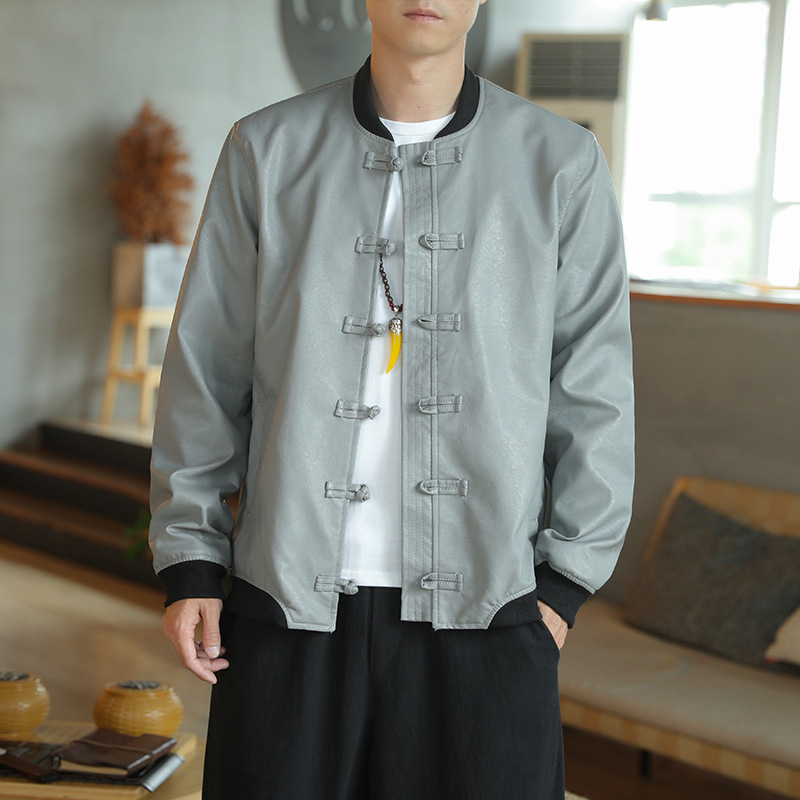 秋冬の中国風の男性のゆったりした大きいサイズの革の服の唐服のジャケットの短いタイプの立襟のバックルのコートの男性のW01-080