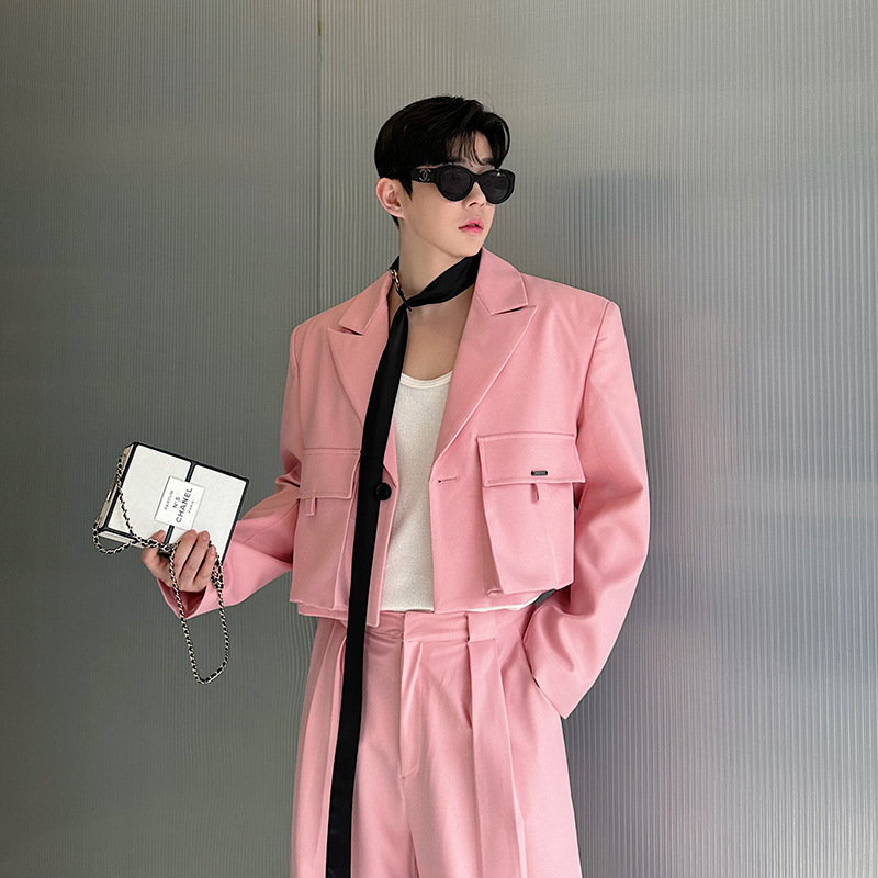 24秋のcleanfitメンズ襟なし肩の质感vネックデザインセクシーなブレザーXZ57-5118