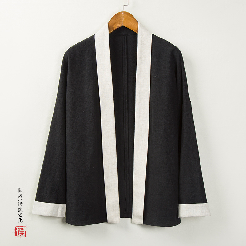 秋冬新作中国風メンズリネンメンズ中長タイプ純色漢服コートF80085