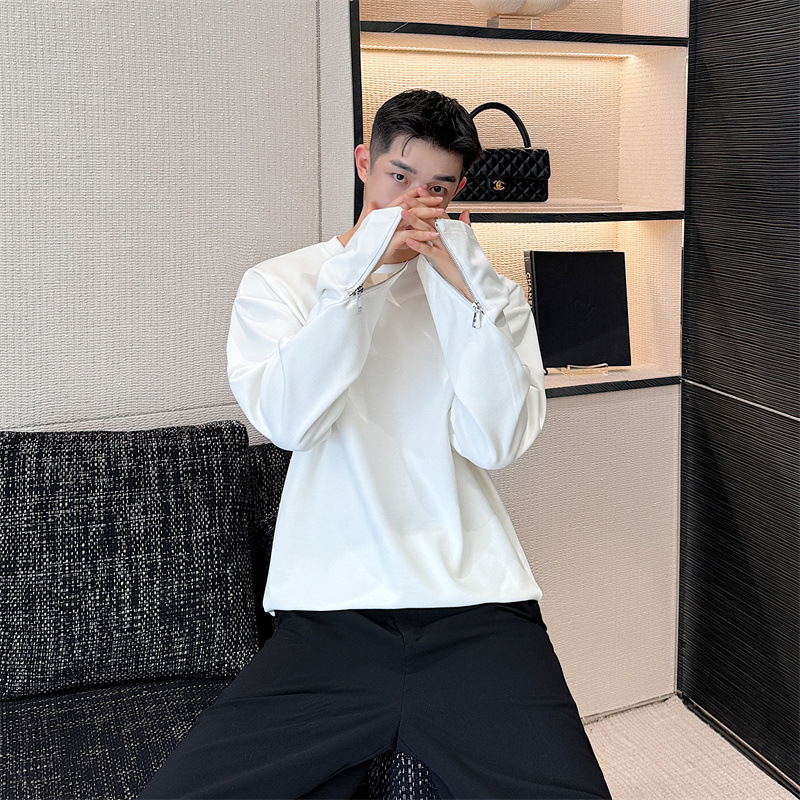 ネットの赤い注意機の設計の袖口のファスナーの小さい衆の長袖のtの底のシャツの男のごろつきのかっこいいファッションの上着の575