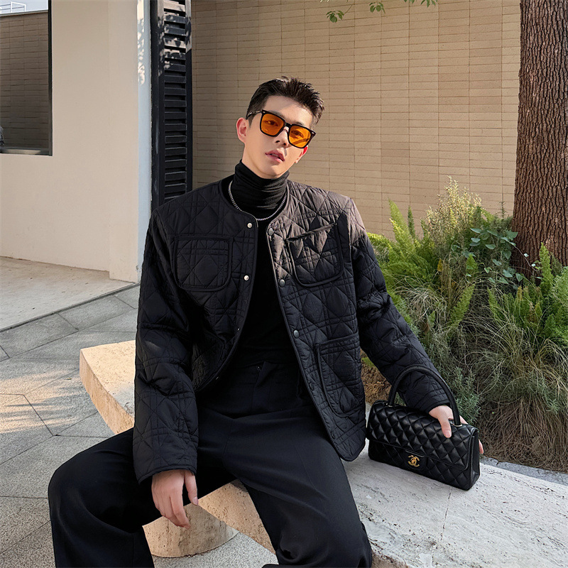秋冬の新型韓国系のデザイン感菱格の小衆の香風は綿のコートの男性の潮の5125を挟みます。