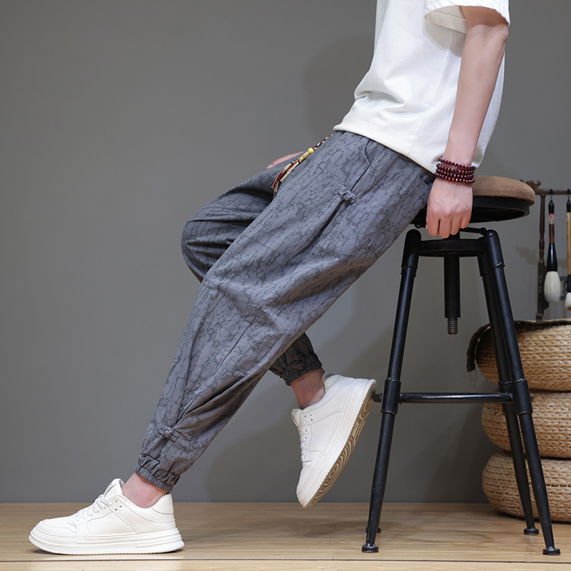 ハーレムパンツメンズ中国風夏薄いボタンワイドレッグパンツメンズカジュアルルーズロングパンツ A30-560