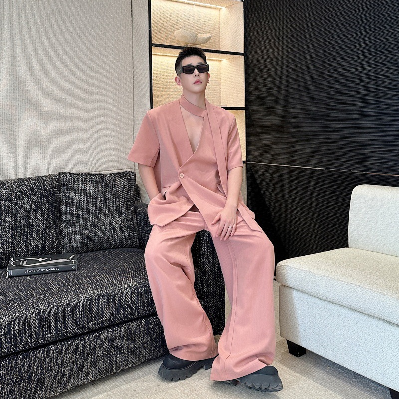 カジュアル白黒コントラストカラー5OLOシャツスーツセットシミターパンツパンツトレンディH2261 5175