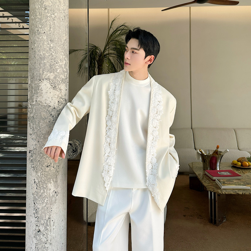 新しい卸売レース装飾スーツジャケットトレンドボタンレススーツトップ A452--H195--5175
