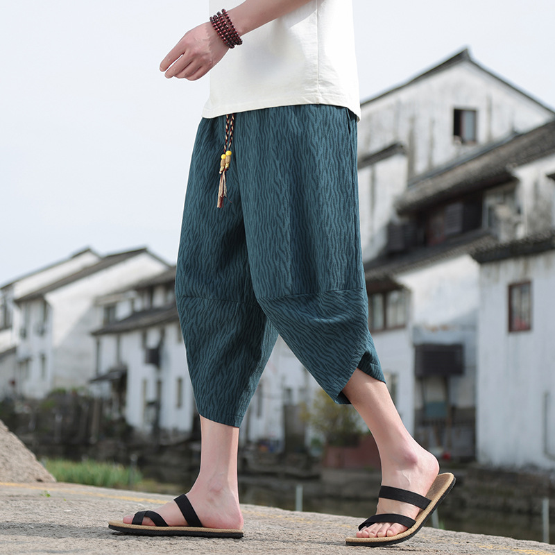 夏の中国風男性七分ズボントレンド広脚大根ズボン大サイズ灯籠ズボン男性2192-4 a 05-40