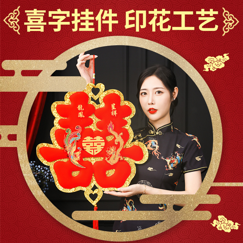 フェルト対聯2020年喬迁の喜字句喜字装飾対聯の美しい贈り物ストラップ結婚中国結