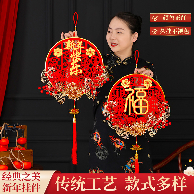 新年のハイエンドの福の字のペンダントの2023ウサギの年の春節の立体の中国は赤い果樹のイチョウの葉のお祝いの装飾品を結びます。