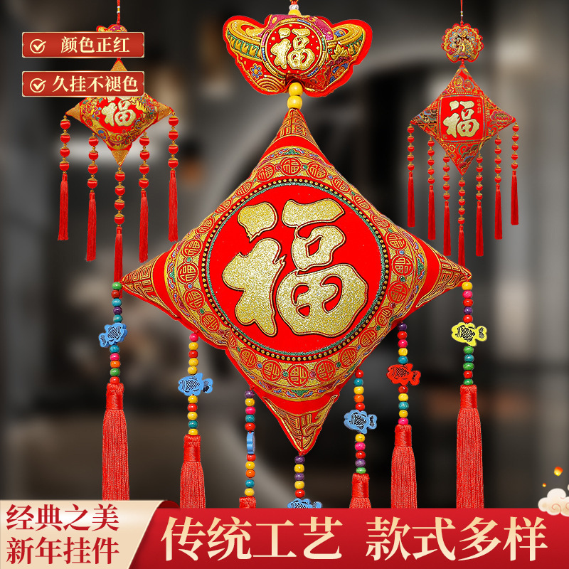 2020新型の家の装飾の綿毛の布の喬おもてなしのお祝いの品の装飾の室内の配置の新年の中国の結びのペンダントの福の字