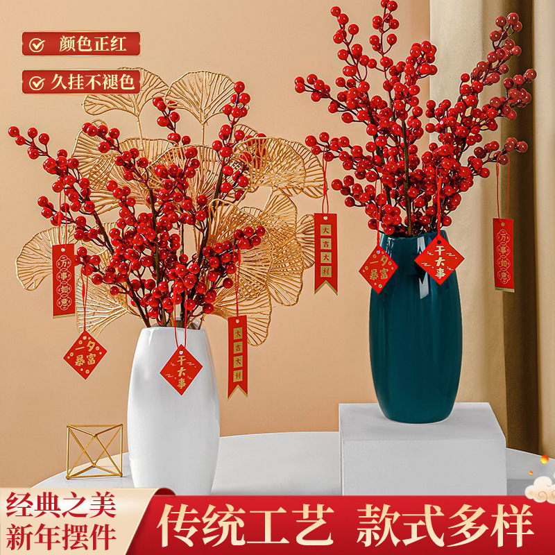 紅果発財果は花ホテルの客間の偽花の置物を模倣して結婚装飾品の紅果の銀杏の葉に移ります。