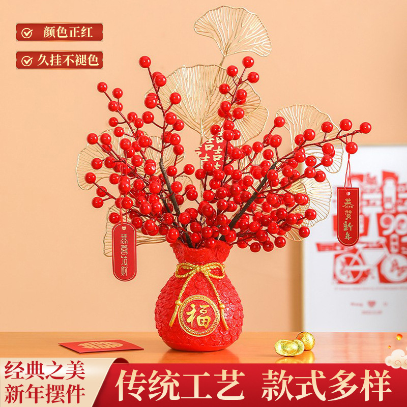 樹脂福袋発財果紅果置物客間ジョー移転結婚装飾品イチョウ葉シミュレーション