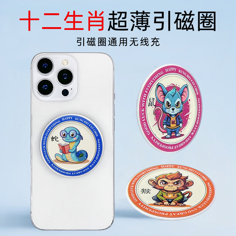 新型の個性的な国潮のMagsafe無線は磁気シートの12年生肖の通用の磁気を充電してパッチの工場の卸売りを吸います。
