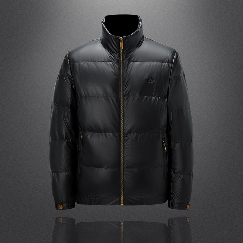 ヨーロッパ駅2024秋冬服の新型男性は立襟ダウンジャケットの大サイズジャカードの高品質保温コートをつなぎ合わせた