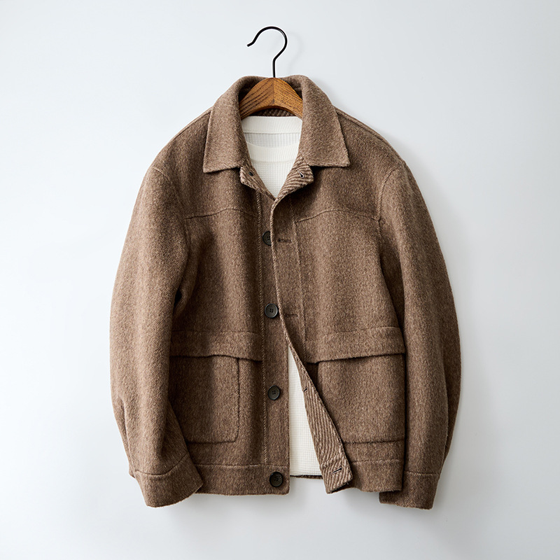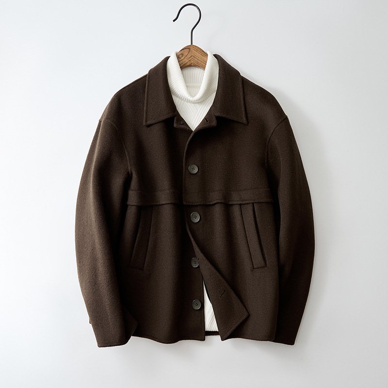 店主風2024秋冬純手短金両面カシミヤコート男性ファッションジャケット