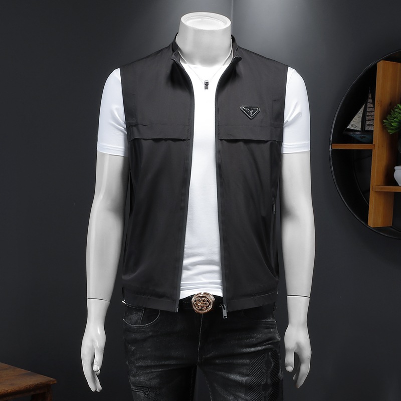 ヨーロッパ駅2025春の新型スタンドカラーの薄いメンズベストコート高品質バッジカジュアルベスト