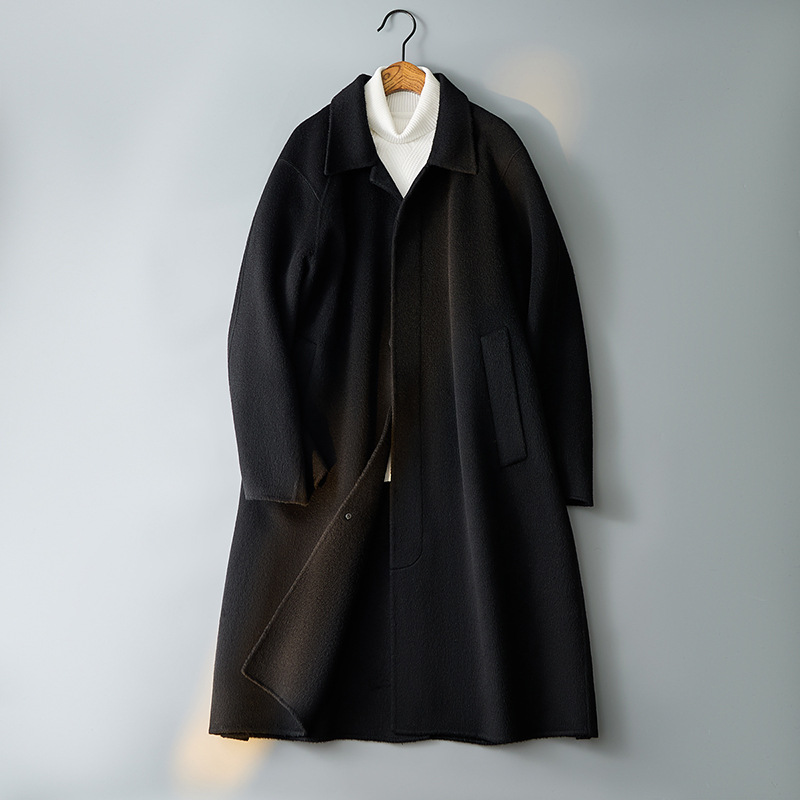 ヨーロッパ駅2024秋冬新作男性両面毛コート英倫風ミディアムウインドブレーカーウールコートブーム