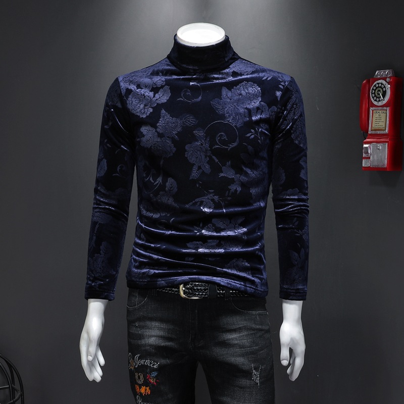 ヨーロッパ駅2024冬の新型男性韓国のベルベットは、高襟のシャツの大サイズのジャカード上着の潮を厚くしている