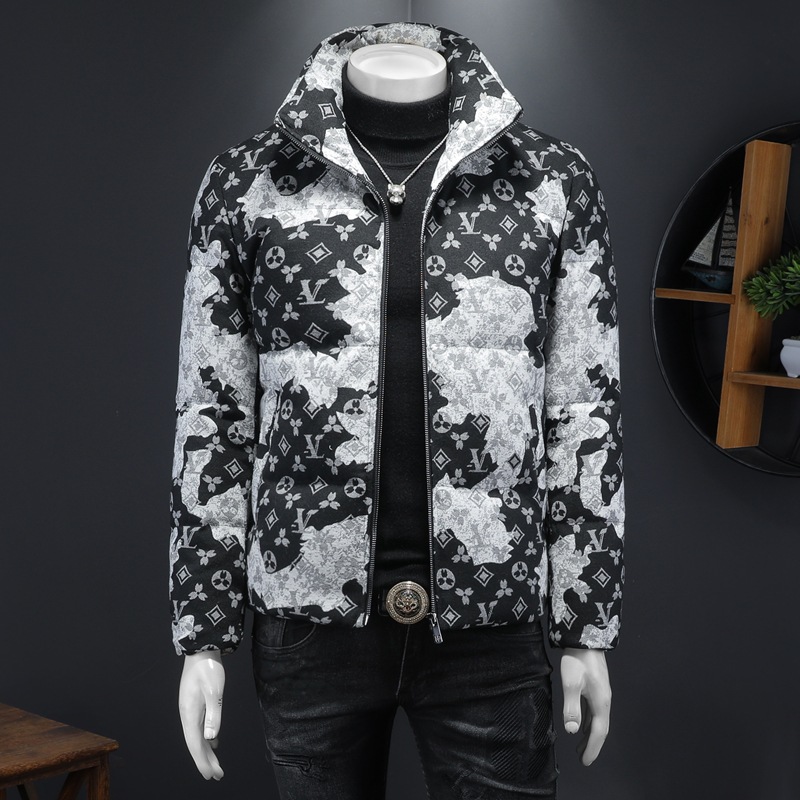 ヨーロッパ駅2024高級冬ファッション男性90% 白鴨パイル野球襟ダウンジャケットプリント保温コート