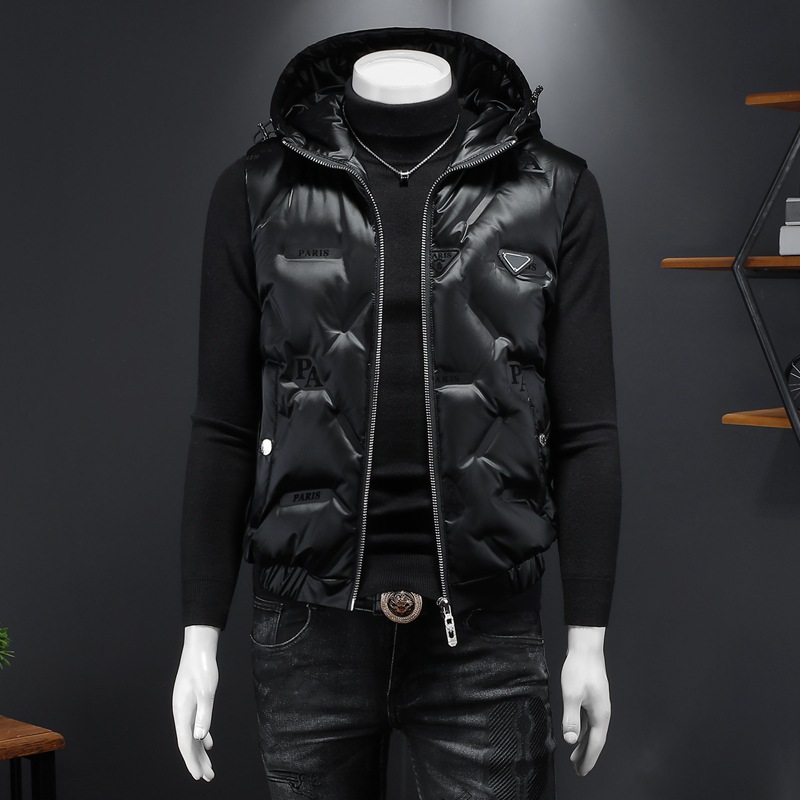欧品2023冬の新型男性高品質90% 白鴨ダウン馬甲大サイズフード付きベストコート