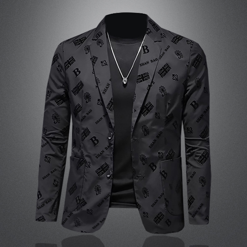 ヨーロッパ駅2025春秋男性修身スーツ大サイズスーツ韓国版カジュアル植毛刺繍シングル西コートブーム